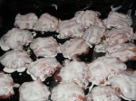 - Vízzel felhígítom a majonézt és megkenem vele a bacon tetejét.